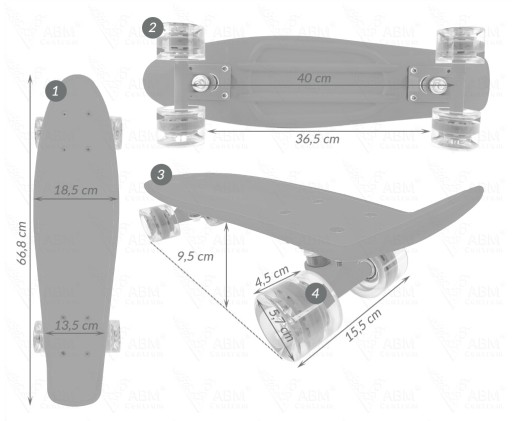 - 13,5 - 18,5 cm - minimalna i maksymalna szerokość deskorolki.