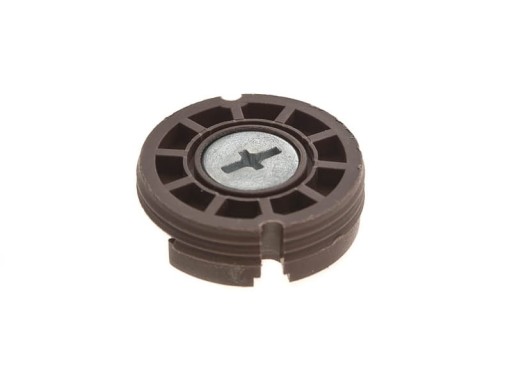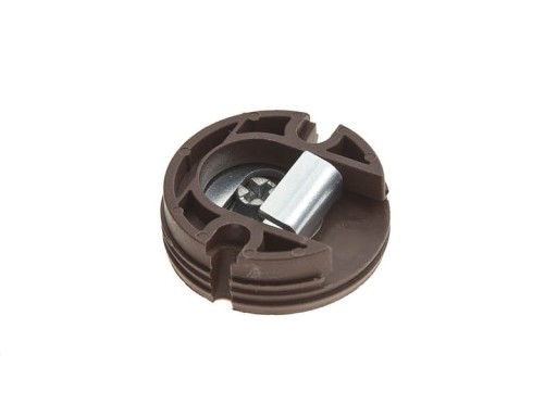 Regulowana zawieszka mimośrodowa fi 35mm firmy ATM. Zawieszka składa się z metalowego haka oraz obudowy z tworzywa sztucznego w kolorze brązowym. Zawieszkę wpuszcza się w płytę meblową i przykręca. Zawieszka pozwala na regulację w poziomie jak i pionie zawieszonego mebla.
