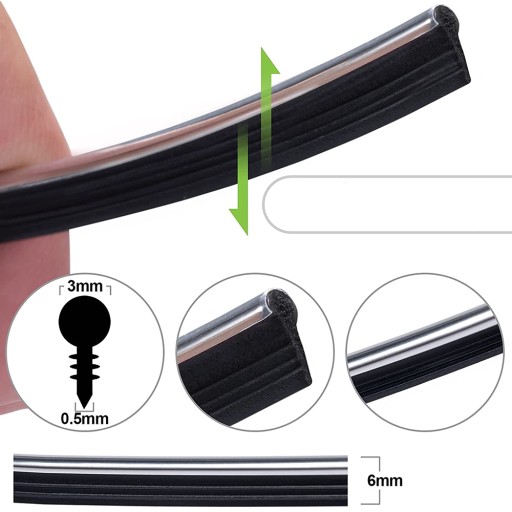 Listwa o długości 5 metrów została wykonana z elastycznego materiału. Taśmę można dociąć do pożądanego wymiaru za pomocą nożyczek lub noża. Pasuje do wszystkich szczelin wewnątrz samochodu, takich jak drzwi, wokół radia, skrzyni biegów oraz deski rozdzielczej. Na zgięciach należy przyciąć listwę na czarnym materiale.