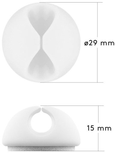 - 1x 2 otwory na kabel Ø maks. 5,5 mm (średnica 35,1 mm, wys. 10,6 mm)