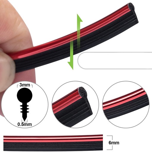 Listwa o długości 5 metrów została wykonana z elastycznego materiału. Taśmę można dociąć do pożądanego wymiaru za pomocą nożyczek lub noża. Pasuje do wszystkich szczelin wewnątrz samochodu, takich jak drzwi, wokół radia, skrzyni biegów oraz deski rozdzielczej. Na zgięciach należy przyciąć listwę na czarnym materiale.