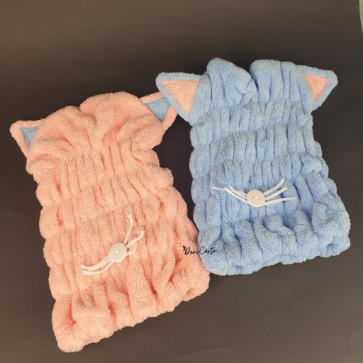Szybkoschnący ręcznik/czepek z motywem uroczego kotka to idealne rozwiązanie dla każdej kobiety, która dba o swoje włosy i ich odbudowę.