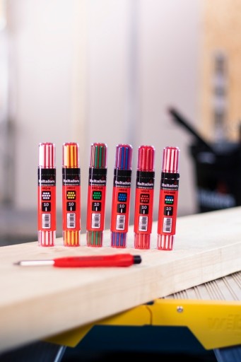 Wygodny marker w kaburze z wbudowaną temperówką, do nanoszenia wyraźnych oznaczeń. Łatwy do wyjmowania z kabury. Kształt kabury gwarantuje stabilne mocowanie znacznika nawet podczas ruchu. Przez otwór w dolnej części zabrudzenia i wilgoć są odprowadzane z pióra, aby zapewnić większą trwałość. Łatwe do wymiany wkłady.