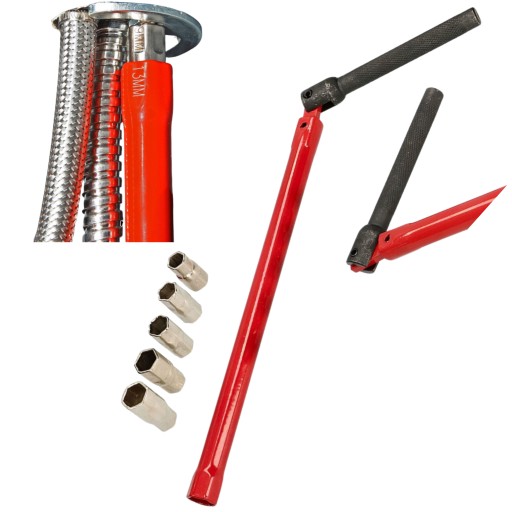 Klucz łamany ułatwiający instalację armatury sanitarnej wraz z sześcioma wymiennymi głowicami, które pasują do większości baterii umywalkowych i kuchennych.