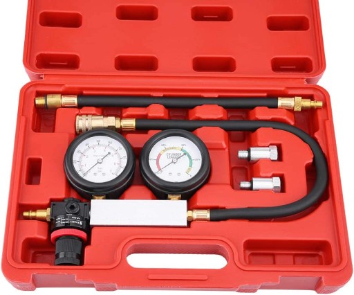 ✅ Tester pozwalający szybko i łatwo zdiagnozować przecieki w komorze spalania. Pozwala na zbadanie stopnia zużycia silnika poprzez doprowadzenie do cylindra sprężonego powietrza i określenie procentowego spadku ciśnienia spowodowanego nieszczelnościami cylindra.