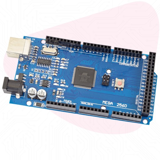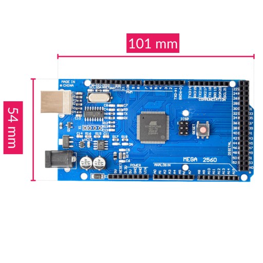 Płytka wyposażona w mikrokontroler ATmega2560 firmy Atmel, który jest wyposażony w 54 wyjścia GPIO. To czyni go idealnym rozwiązaniem dla zastosowań takich jak automatyka domowa czy drukarki 3D, gdzie potrzebna jest duża ilość portów.