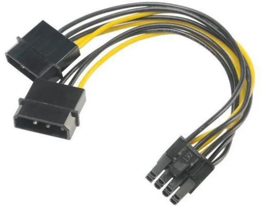 Ten 4-pinowy zasilacz Molex na 6+2pin PCIe umożliwia korzystanie z karty graficznej PCI Express z zasilaniem przez połączenie Molex.