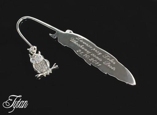 Srebrna zakładka do książki to oryginalny prezent z możliwością personalizacji - grawer według Twojego pomysłu do 50 znaków na odwrotnej stronie zakładki.