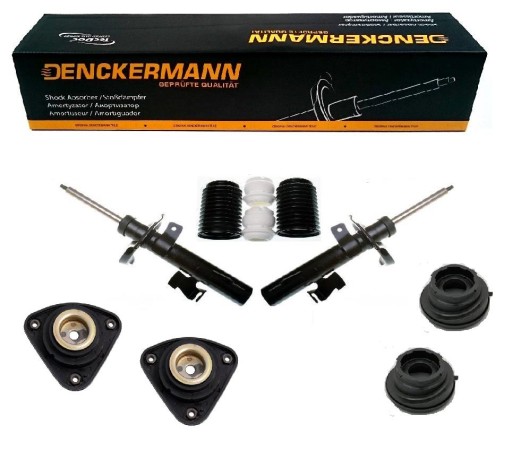 KOMPLET AMORTYZATORÓW GAZOWYCH RAZEM Z OSŁONAMI I ODBOJAMI NA PRZÓD FIRMY DENCKERMANN, RAZEM Z PODUSZKAMI I ŁOŻYSKAMI