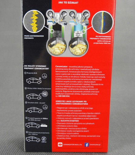 Ceramizator – wysokiej jakości preparat, przeznaczony do ochrony i rewitalizacji silników benzynowych. Innowacyjna formuła inteligentnych nano cząsteczek o wysokiej zdolności powierzchniowo czynnej wnika w strukturę metalu tworząc wytrzymałą stabilną powłokę ochronną (ceramiczno-metalową) o niskim współczynniku oporu i doskonałych właściwościach przewodności cieplnej. Pozwala to na znaczną redukcję tarcia oraz stałą ochronę podzespołów, praktycznie eliminując proces ich zużycia. Regularne stosowanie pozwala znacząco wydłużyć żywotność silnika. Zapewnia ochronę na 100 000 KM.
