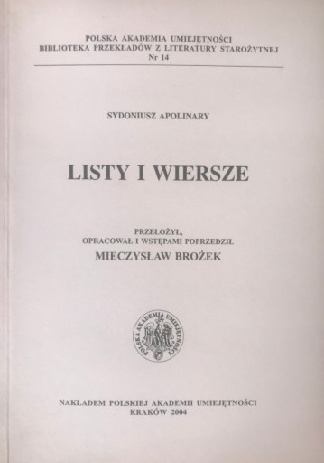 Sydoniusz Apolinary, V-wieczny rzymski polityk, poeta, wreszcie biskup, działający w Galii należał do elity intelektualnej późnoantycznego świata. Jego dzieła - listy oraz poezje - ukazują wyszukany świat gallorzymskich arystokratów, którzy poświęcają się twórczości literackiej, podczas gdy Rzym upada pod ciosami barbarzyńców.