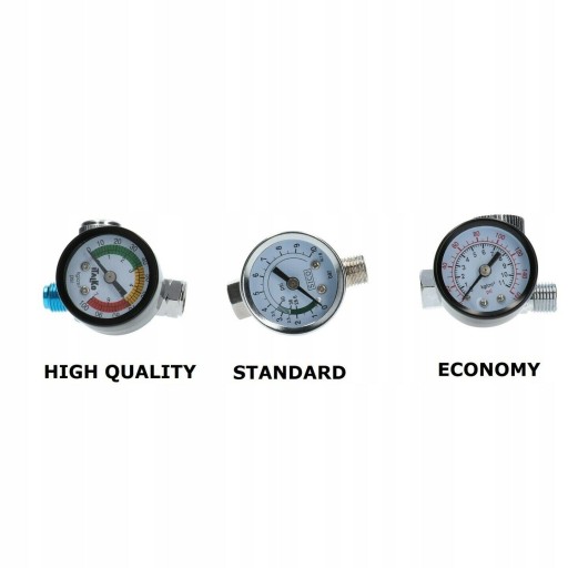 Regulator został wyposażony w pokrętło które umożliwia szybki i dokładne regulowanie dopływu powietrza oraz manometr który pokazuje aktualne ciśnienie.