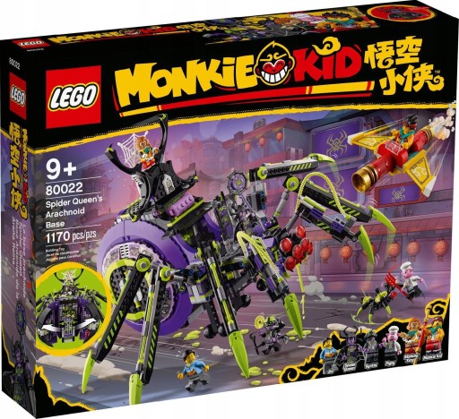 - Zestaw LEGO® Monkie Kid™ (80022) zawiera bazę arachnoidów Spider Queen, która jest mechem i mobilnym centrum dowodzenia. To doskonała inspiracja dla dzieci, które będą wymyślać niesamowite opowieści o walce.