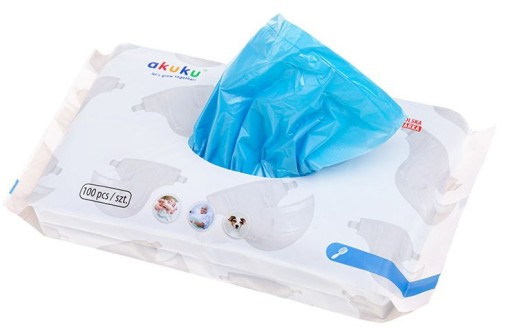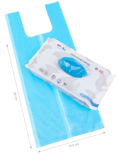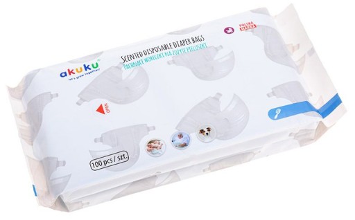 Woreczki na zużyte pieluszki Akuku są dostępne w uniwersalnym rozmiarze, dzięki czemu bez trudu zmieścisz tam pieluchę i chusteczki każdej wielkości.