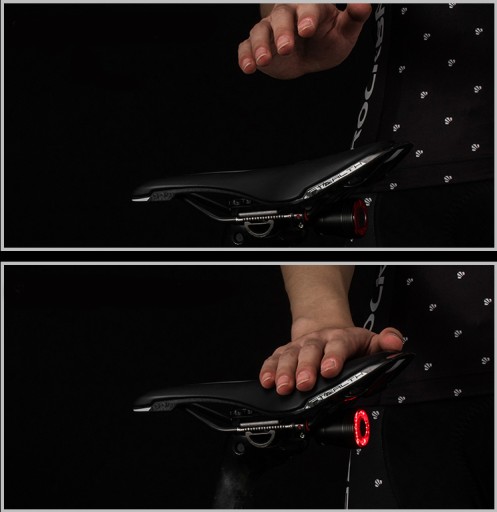 Tylna lampka rowerowa Rockbros Q3 SMART posiada czujnik wykrywający hamowanie lub ruch. Znacząco zwiększa to bezpieczeństwo podczas poruszania się rowerem oraz pozwala ograniczyć zużycie wbudowanego akumulatora (w przypadku braku ruchu w ciągu 30 sekund lampka automatycznie się wyłączy).