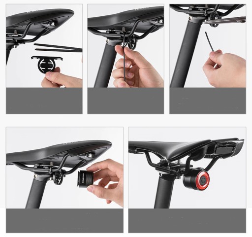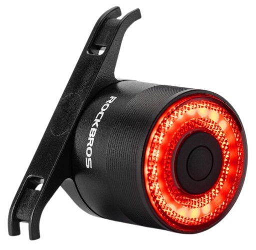 - Lampka rowerowa tylna Rockbros Q3 z inteligentnym czujnikiem ruchu oraz hamowania;