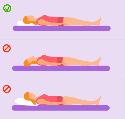 ❌ Spanie bez poduszki lub na zbyt wysokiej poduszce sprawia, iż kręgi szyjne wyginają się przez co mięśnie nie mogą się rozluźnić. Prowadzi to do bólu a w konsekwencji uszkodzeń kręgosłupa.