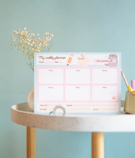 Planer tygodniowy z motywem Pusheen na biurko A4