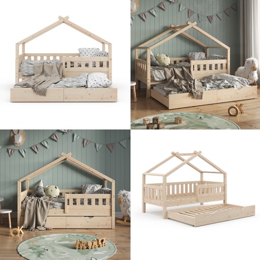 Łóżko domek to absolutna atrakcja w pokoju dziecięcym! To nie tylko łóżko wykonane z drewna, ale także miejsce zabaw rozwijające wyobraźnię i kreatywność najmłodszych. Projekt jest po prostu oszałamiający i pasuje do każdego stylu. Łóżko wykonane jest z wysokiej jakości drewna i jest dostępne w różnych wzorach i wykończeniach. W zestawie łóżko dla gości i materac, co zapewnia doskonały komfort spania. Zapewnij swojemu dziecku bezpieczny i przytulny dom dzięki temu łóżku do zabawy! {b}Dane techniczne:{/b}{b}Kolor:{/b}Biały{b}Wymiary:{/b}167.6 x 133.6 x 87.6 cm (szer. x wys. x gł.){b}Materiał:{/b}Drewno (sosna){b}Waga netto bez opakowania:{/b}38.02 kg{b}Masa brutto wraz z opakowaniem:{/b}40 kg---{b}Dane techniczne:{/b}{b}Kolor:{/b}Brązowy{b}Wymiary:{/b}167.6 x 133.6 x 87.6 cm (szer. x wys. x gł.){b}Materiał:{/b}Drewno (sosna){b}Waga netto bez opakowania:{/b}39 kg{b}Masa brutto wraz z opakowaniem:{/b}44.6 kg---ZAKRES DOSTAWY: Łóżko domowe, Instrukcja montażu, Materiały montażowe