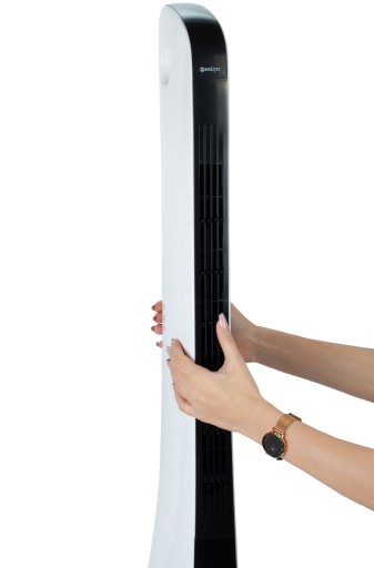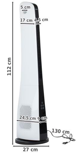 Wentylator kolumnowy zamiast klasycznego wiatraka został wyposażony w wentylator turbinowy, który dmucha na całej wysokości wentylatora.