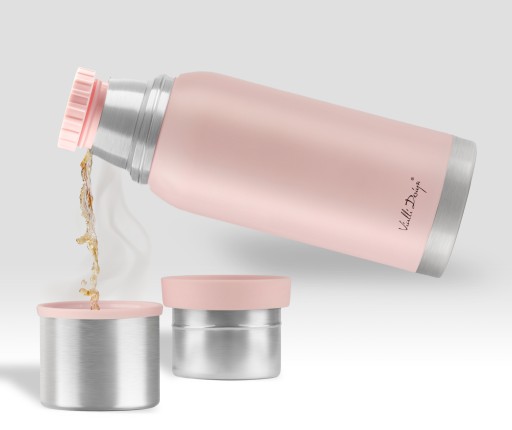- Stalowa (18/8) izolacja próżniowa, zapewniająca maksymalne utrzymanie odpowiedniej temperatury dla gorących i zimnych napojów do 24 godzin