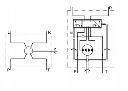 Orbitrol 125 z systemem CN (CLOSED NORMALLY), podczas gdy kierownica stoi przepływ oleju przez orbitrol jest zablokowany, orbitrol trzyma ciśnienie w układzie