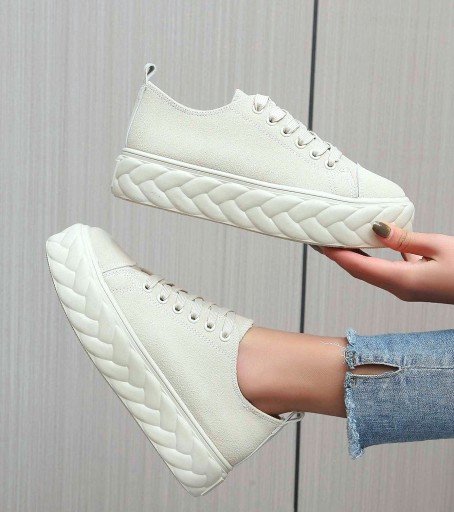 ЖЕНСКИЕ ТУФЛИ НА ПЛАТФОРМЕ ТРЕНЕРЫ БЕЖЕВЫЕ ЗАМШЕВЫЕ R41