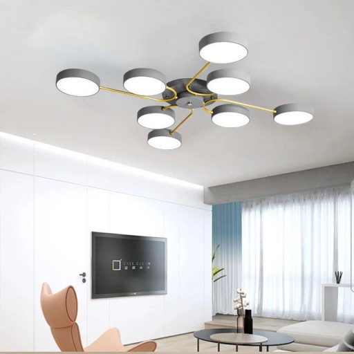 LAMPA SUFITOWA NOWOCZESNA DUŻA GREY GOLD 8 LED
