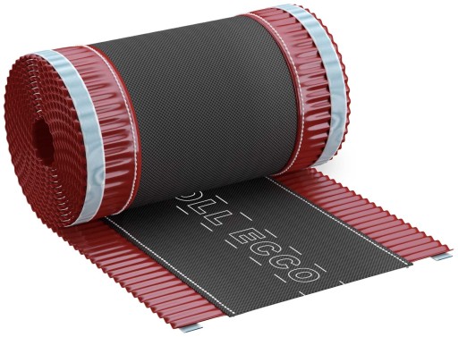 Taśma kalenicowa Eurovent® ROLL ECCO Znajduje zastosowanie jako element wentylacyjny i zabezpieczający na kalenice poziome i skośne. Zabezpiecza połać dachu przed przenikaniem nawiewanego od strony kalenicy śniegu, deszczu, wilgoci, pyłu i kurzu. Nadaje się do stosowania pod prawie wszystkie typy pokryć dachowych – dachówki ceramiczne, betonowe, blachodachówki, blachy trapezowe, profilowane blachy aluminiowe itp.