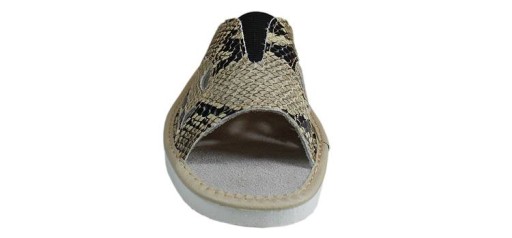 Wężowe kapcie damskie ze skóry naturalnej.
