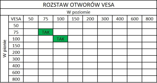 ✔️ Standard VESA: do 100mm x 100mm (max)