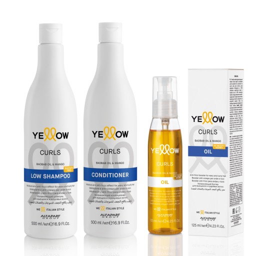 YELLOW CURLS LOW SHAMPOO - niskopieniący szampon przeznaczony do pielęgnacji włosów kręconych i falowanych. Delikatnie oczyszcza włosy nie powodując ich przesuszenia. Dzięki zawartości cennej mieszanki z masła mango i oleju z baobabu doskonale nawilża, odżywia, dodaje blasku, a także ułatwia rozczesywanie splątanych włosów. Wyjątkowa formuła zapobiega puszeniu oraz podkreśla naturalny skręt włosów.