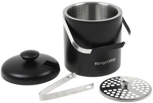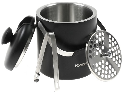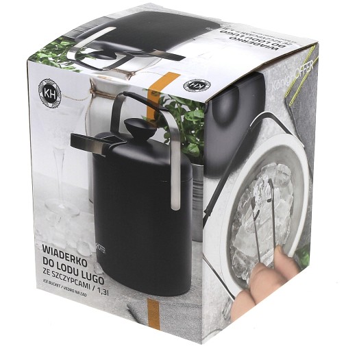 Model wiaderka KonigHOFFER LUGO zaprojektowany z wykorzystaniem nierdzewnego stopu stali szlachetnej oraz wytrzymałego tworzywa sztucznego w kolorze czarnym. Producent zadbał w tym przypadku o uzupełnienie atrakcyjnego designu, dodając do niego bardzo dobry poziom funkcjonalności. Wielogodzinne utrzymanie poziomu chłodu pozwalającego na przechowywanie kostek w stanie dającym możliwość łatwego porcjowania i schładzania nimi napojów. Wiaderko sprzedawane w zestawie z praktycznymi szczypcami do lodu.