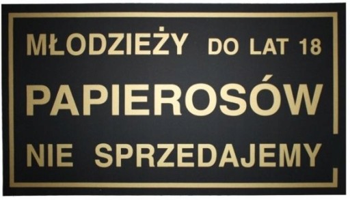 Tabliczka "MŁODZIEŻY DO LAT 18 PAPIEROSÓW NIE SPRZEDAJEMY"