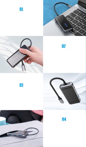 VENTION HUB USB — Type-C 5 в 1 — PD 87 Вт — 4x USB3.0