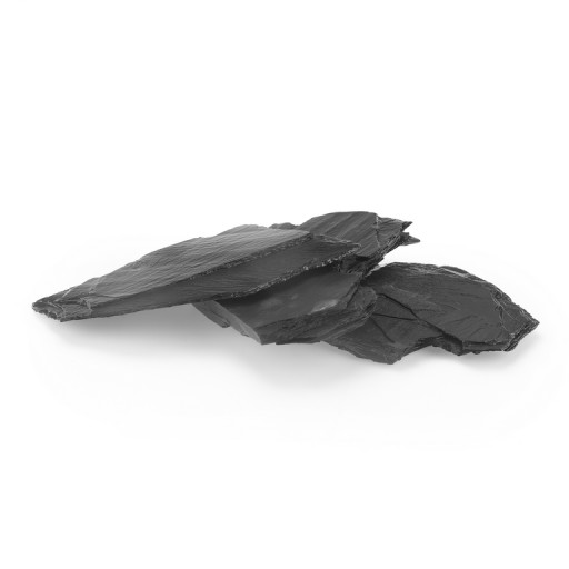 Ciemne, cienkie płytki do ułożenia w akwarium. W kontakcie z wodą znacznie ciemnieją, a w połączeniu z akwarystycznym oświetleniem nabierają subtelnego blasku. Ciemny kolor w połączeniu z nieregularnym kształtem doskonale kontrastuje z zielenią roślin oraz z jasnym podłożem w akwariach skalnych.