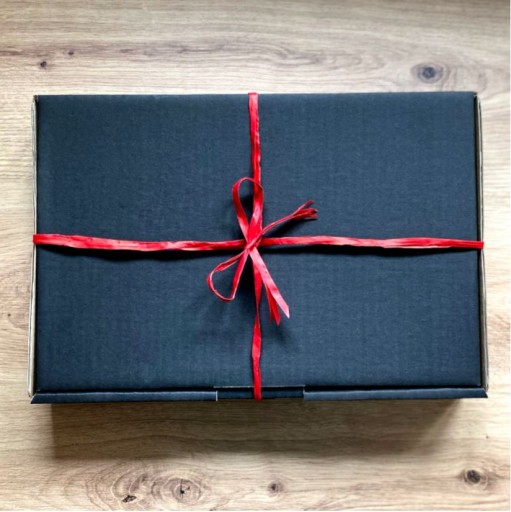 W formularzu pozakupowym Allegro dostępna jest opcja ozdobnego pakowania koszulki w czarny kartonik i elegancką ozdobną czerwoną wstążkę.