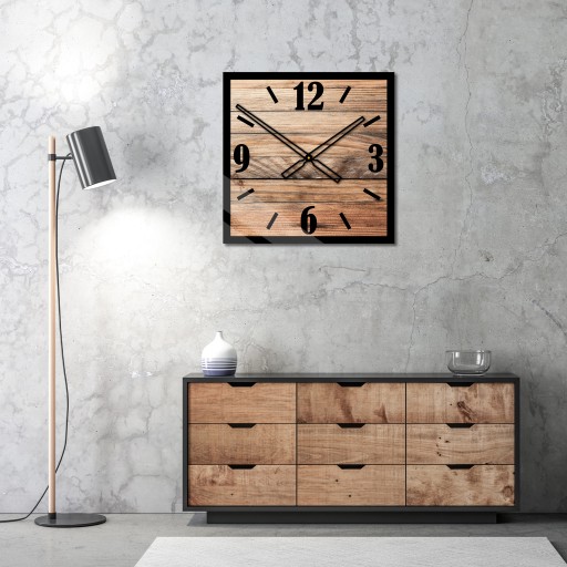 Nowoczesny zegar ścienny ze szkła hartowanego z motywem drewnianym to idealna dekoracja dla Twojego wnętrza.