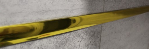 Taśma wykonana z dość elastycznego materiału z tworzyw sztucznych z domieszką gumy umożliwiającej profilowanie listwy do powierzchni. Pokryta kolorem złotym. Na listwie została zastosowana mocna taśma klejąca.