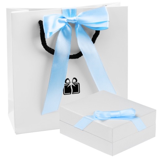 Medalik jest w komplecie ze złotym łańcuszkiem, o takiej samej próbie. Zestaw doskonale będzie pasował na prezent dla chłopca, ponieważ zapakujemy go do pudełeczka z niebieską kokardką (w jego wnętrzu umieścimy tabliczkę z Państwa dowolną dedykacją np. życzenia z grafiką) oraz torebki prezentowej z niebieską wstążką.