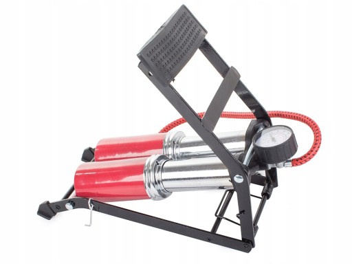 POMPKA NOŻNA SAMOCHODOWA/ROWEROWA DWUCYLINDROWA Z MANOMETREM + KOŃCÓWKI
