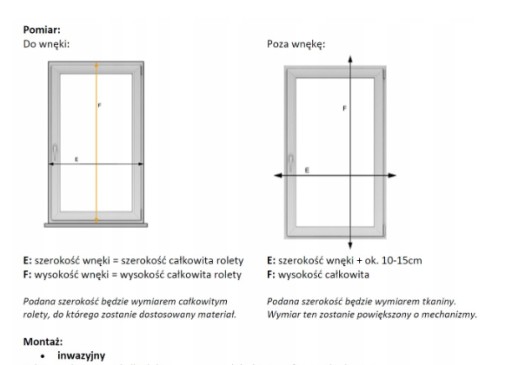 - sposób montażu (poza wnękę /do wnęki / inwazyjny do ściany / inwazyjny do sufitu / inwazyjny do okna)