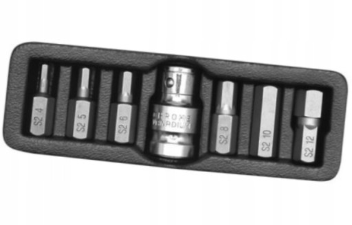 Profesjonalny zestaw YATO, służący do odkręcania śrub specjalnych typu hex. Różnorodność rozmiarów zapewnia możliwość wykonania wielu prac w specjalistycznych serwisach mechanicznych i samochodowych. Końcówki są długości 30 mm, mocowane w uchwycie sześciokątnym 10 mm, dostosowanym do współpracy z grzechotką 1/2". Zestaw wykonany z najwyższej jakości stali stopowej narzędziowej S2, która charakteryzuje się: