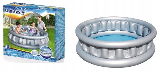 Basenik w kształcie latającego spodka to hit wakacyjnego wypoczynku nad wodą od firmy Bestway. Jego unikalna konstrukcja z miękkimi ściankami to bezpieczne rozwiązanie wspólnej zabawy. Basenik został wykonany z trwałego i solidnego materiału PVC, odpornego na uszkodzenia i odbarwienia. Basen składa się z trzech niezależnych komór powietrza, zaworów bezpieczeństwa, zawór spuszczania wody.