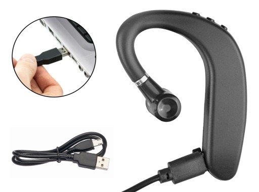 Zauszna słuchawka bezprzewodowa z możliwością odtwarzania muzyki w zestawie z kablem USB!