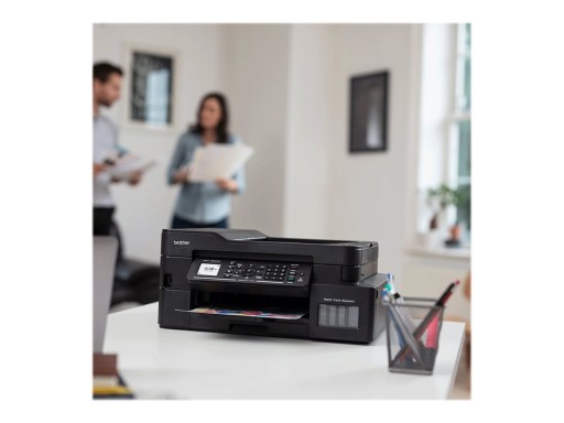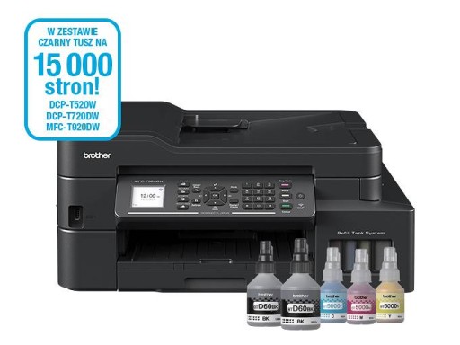 Model MFC-T920DW jest wyposażony w funkcje drukowania, kopiowania, skanowania i faksowania. Urządzenie pozwala zaoszczędzić pieniądze dzięki wydajnym butelkom z atramentem oraz łatwemu systemowi napełniania zbiorników z tuszem.