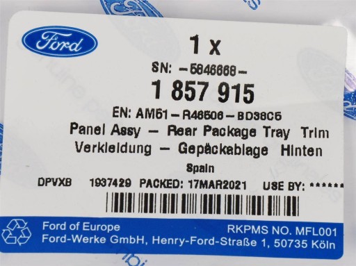 ЗАДНЯЯ ПОЛКА БАГАЖНИКА C-MAX/GRAND C-MAX 10-15