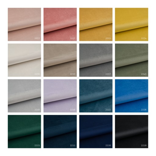 Magic Velvet to dzianina welwetowa w wielu wariantach kolorystyznych. Mnogość kolorów pozwala na dopasowanie jej do wielu stylów wystroju wnętrz i różnorodnej kolorystyki. Jest miękka w dotyku