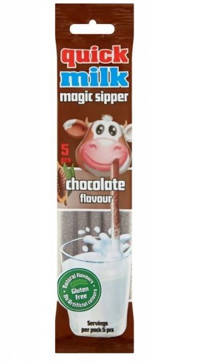 Chocolate- Słomki smakowe do mleka o czekoladowym smaku. Świetna propozycja na ożywienie napoju mlecznego. Słomkę wystarczy włożyć do zimnego kubka z mlekiem, by napój zmienił smak na czekoladowy - wystarczy pić przez słomkę ! :) Jedna saszetka zawiera 5 słomek z brązowymi granulkami.