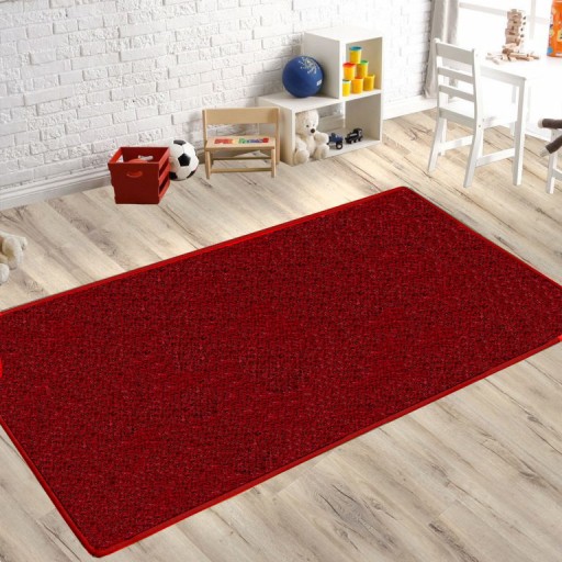 Miękki gładki jednokolorowy dywan uszyty z wykładziny dywanowej.